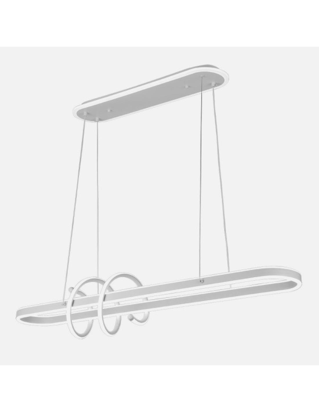 Colgante de la serie PAPER de color BLANCO. Este moderno colgante LED está realizado en metal y acrílico. Posee tecnología LED INTEGRADO con 185 vatios de potencia en su luz principal, 16380 lúmenes y con 3 TEMPERATURAS SELECCIONABLES DE LUZ (3000k, 4000k y 6000k) luz cálida, natural y blanco frío, también equipado con una LUZ AMBIENTE o LUZ DE NOCHE de 10,5 vatios en la estructura que va pegada al techo, pudiendo dejarla sola encendida, creando un ambiente acogedor. Viene con MANDO A DISTANCIA incluido y REGULADOR DE INTENSIDAD. Se caracteriza por su diseño con formas curvas y una espiral lumínica enrollada sobre si mismo con aspecto brillante resultando un juego de luz muy interesante suspendido por cables. Sus dimensiones, regulables en altura son de 50<,110X100X19 centímetros. Disponible en esta serie en color blanco y en negro para elegir el que mejor se adapte a su decoración.