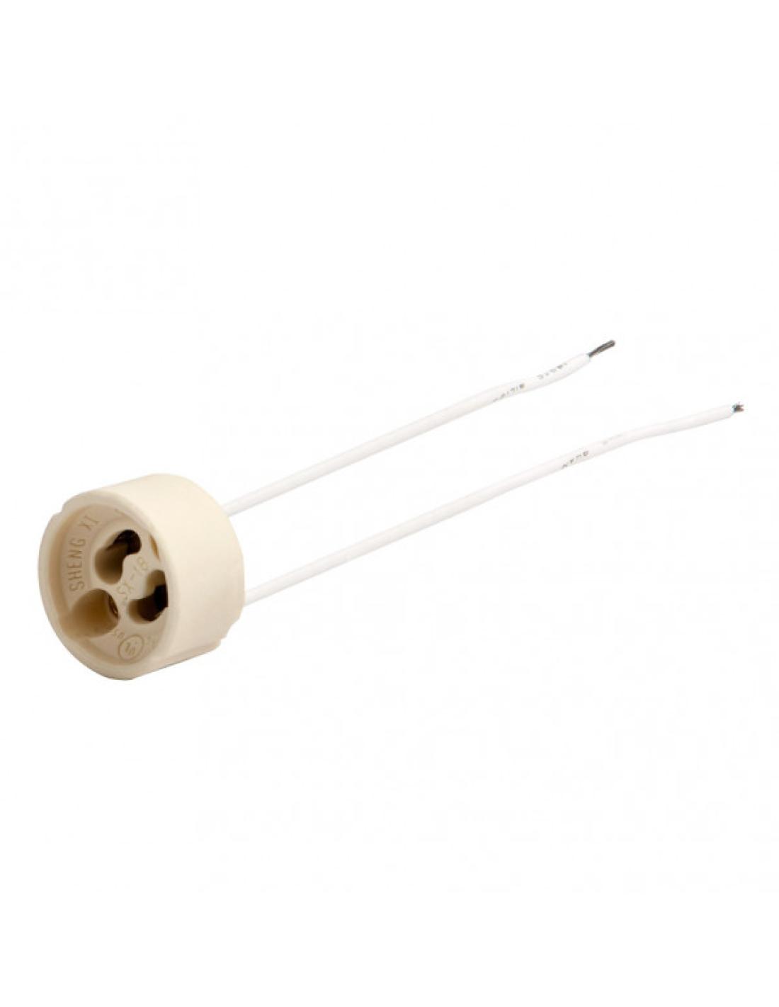 Portalámparas de cerámica GU10. El cable tiene una extensión de 15 cm. Sus dimensiones son 3x3x3 centímetros.